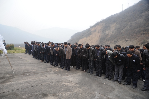 11月28日上午九時許,陳家山礦黨政班子在礦“11.28”安全警示教育基地組織召開了安全警示教育大會,礦副總以上領導、生產、輔助區(qū)隊干部職工四百余人參加了本次大會,會議由本礦黨委副書記(兼工會主席)謝國慶同志主持,在警示教育大會上,該礦安監(jiān)處處長王體文同志代表礦黨政對遇難礦工表示了深切哀悼,就如何加強安全管理,實現(xiàn)本質安全型礦井,切實抓好百日安全活動,實現(xiàn)安全零目標,提出了明確要求,隨后,與會全體職工在安全警示碑前進行了安全宣誓,運輸區(qū)、通維區(qū)、綜掘二隊分別代表區(qū)隊長、班組長和一線職工做了表態(tài)發(fā)言。