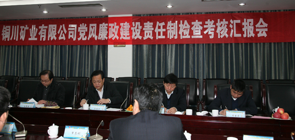 的執(zhí)行力;強(qiáng)化廉潔教育,廉潔文化創(chuàng)建工作不斷深化;突出重點(diǎn),不斷深化黨務(wù)公開(kāi)工作;狠抓源頭治理,不斷完善懲治和預(yù)防腐敗體系;重視信訪舉報(bào),嚴(yán)肅查處違法違紀(jì)案件;堅(jiān)持以人為本,企業(yè)得到持續(xù)全面和諧發(fā)展等六個(gè)方面進(jìn)行了詳細(xì)匯報(bào)。同時(shí),就2012年公司黨政落實(shí)黨風(fēng)廉政建設(shè)責(zé)任制,加強(qiáng)紀(jì)檢監(jiān)察工作提出了主要措施:一是全面落實(shí)黨風(fēng)廉政建設(shè)責(zé)任制;二是扎實(shí)推進(jìn)適合銅煤特點(diǎn)的懲罰體系建設(shè);三是進(jìn)一步強(qiáng)化廉潔制度的落實(shí);四是進(jìn)一步深化廉潔文化建設(shè);五堅(jiān)決從嚴(yán)查辦違紀(jì)違法案件;六是深入開(kāi)展效能監(jiān)察工作。