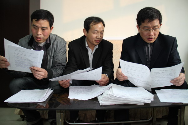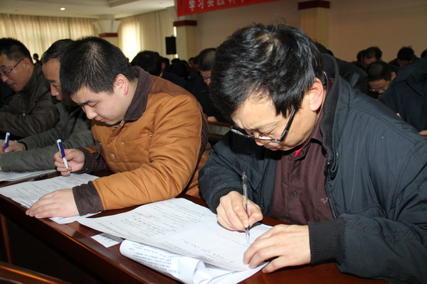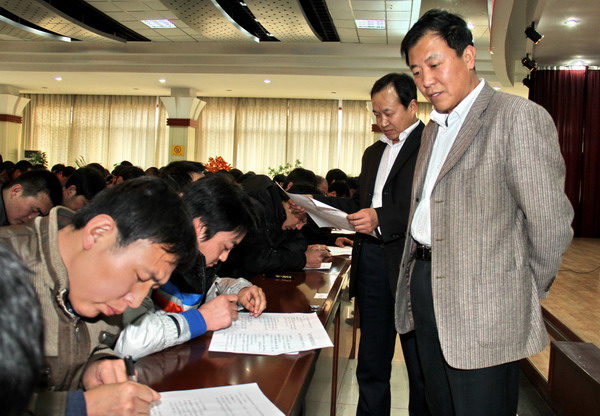 通風(fēng)部工作人員在王石凹礦查看該礦全員考試試卷