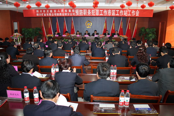 11月11日上午,銅川市王益區(qū)人民檢察院、銅川礦業(yè)有限公司鐵路運銷分公司預(yù)防職務(wù)犯罪工作市區(qū)工作站首次工作會在鐵路運銷分公司二樓會議室召開。銅川市人民檢察院職務(wù)犯罪預(yù)防處處長史明星,王益區(qū)人民檢察院檢察長張宏甫、副檢察長楊新林,銅川礦業(yè)公司紀(jì)委副書記王發(fā)明,鐵路運銷分公司黨委書記高德富、經(jīng)理孫建軍,礦業(yè)公司副處級紀(jì)檢員陳和萍等在主席臺就座。王益區(qū)檢察院反貪局、反瀆局及職務(wù)犯罪預(yù)防等有關(guān)部門負(fù)責(zé)人,礦業(yè)公司所屬市區(qū)18個單位黨政主要領(lǐng)導(dǎo)、紀(jì)委書記、紀(jì)委副書記、監(jiān)察科長,鐵路運銷分公司班子全體成員、機關(guān)各科室、基層各單位負(fù)責(zé)人等近百人參加了會議。鐵路運銷分公司黨委書記高德富主持了當(dāng)天的會議。