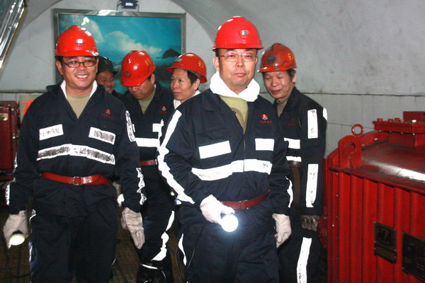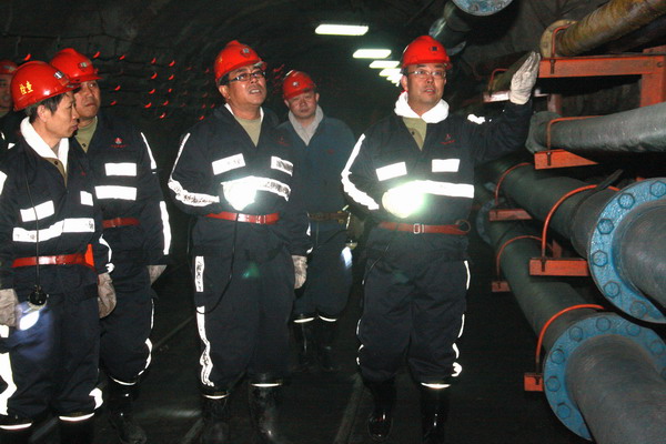 黃書記一行人到礦后,在該礦礦長(zhǎng)李文輝等領(lǐng)導(dǎo)陪同下,深入井下實(shí)地查看了該礦井下作業(yè)環(huán)境、質(zhì)量標(biāo)準(zhǔn)化建設(shè)、以及企業(yè)文化建設(shè)推行情況,現(xiàn)場(chǎng)觀摩了職工崗位描述,聽取了該礦礦長(zhǎng)李文輝等領(lǐng)導(dǎo)對(duì)目前井下各項(xiàng)工作進(jìn)展情況介紹,并對(duì)重要工作環(huán)節(jié)與該礦領(lǐng)導(dǎo)進(jìn)行了交流。在升井后,黃書記一行人在該礦礦長(zhǎng)李文輝,黨委書記李國(guó)璧等陪同下又視察了該礦工業(yè)場(chǎng)所。