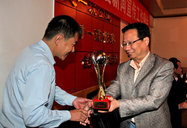 新聞報道工作優(yōu)勝單位的陳家山礦頒發(fā)獎杯