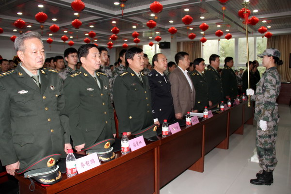 新入隊(duì)?wèi)?zhàn)士接受領(lǐng)導(dǎo)檢閱