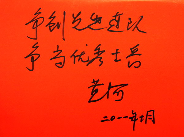 礦業(yè)公司黨委書(shū)記黃河為連隊(duì)題詞