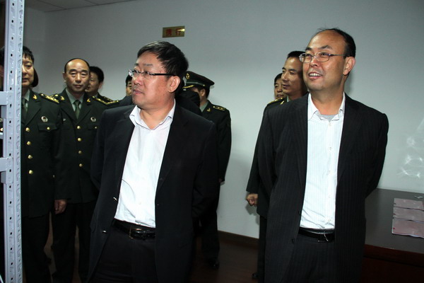 礦業(yè)公司副總經(jīng)理郭寶輝、封建利視察連部庫(kù)室及維穩(wěn)器材設(shè)施建設(shè)
