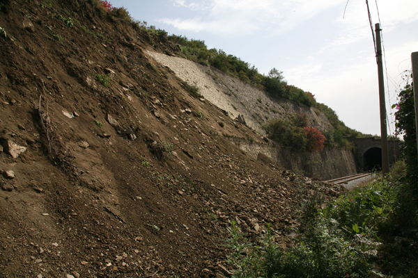 9月上旬連日的降雨,致使銅川礦區(qū)鐵路專用線多處滑坡。9月27日一早,鐵運公司北區(qū)段工務人員在例行檢查時發(fā)現陳家山專用鐵路線K4km+950m處東面護坡滑塌,接到報警后,北區(qū)段黨政領導立即組織人員上山進行勘察發(fā)現從路基到山頂約300米的整個山體按山勢西北方向側滑,滑動土石量約7-10萬方。險情發(fā)生后,北區(qū)段向上級匯報,鐵運公司經理孫建軍立即下達命令,啟動“三防”預案,封鎖現場以外150米的鐵路線路,指定專人設立警示路牌,晝夜24小時把守重要路段,觀察現場情況。并及時與陳家山礦方聯系。陳家山礦黨政領導多次到現場觀察險情,組織人員疏散10戶轄區(qū)住戶。