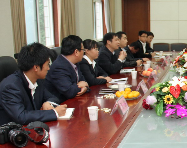 與黃陵礦業(yè)公司機(jī)關(guān)黨委秘書(shū)鄧濤交流工作