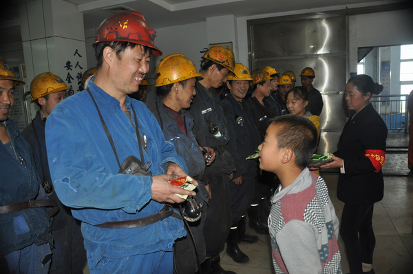 午飯時間,前來職工食堂就餐的職工家屬,也收到了2塊中秋節(jié)慰問月餅,讓每一位節(jié)日期間堅守工作崗位、堅持安全生產(chǎn)的員工和家屬感受到礦黨政工組織的關(guān)切之情。當(dāng)天帶領(lǐng)綜采隊中班下井的副隊長游孝金,對在井口分發(fā)月餅的女工安全協(xié)管員們說,礦上為下井的職工送月餅、送安全囑咐、送節(jié)日問候,讓職工感動不已,干好本職工作、抓好安全生產(chǎn)的信心更足。