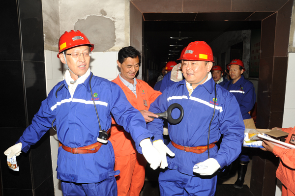 上午10時(shí),國(guó)稅局副局長(zhǎng)張寧一行,在陳家山煤礦主要領(lǐng)導(dǎo)的陪同下,深入井下察看了該礦井下的設(shè)備運(yùn)行及安全情況。視察途中與陪同檢查領(lǐng)導(dǎo)進(jìn)行了親切交談,詳細(xì)詢問(wèn)了井下安全投入、入井人數(shù)、“一通三防”管理及瓦斯綜合治理及煤礦安全措施落實(shí)等情況。