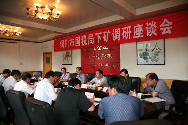 銅川市國(guó)稅局深入開(kāi)展“為民服務(wù)零距離”活動(dòng),8月2日,銅川市國(guó)稅局副局長(zhǎng)張寧,總經(jīng)濟(jì)師趙建武,稽查局長(zhǎng)張叢洲,王益區(qū)國(guó)稅局長(zhǎng)萬(wàn)水田,貨勞科科長(zhǎng)夏應(yīng)平,納稅服務(wù)科科長(zhǎng)郭秀梅,在礦業(yè)公司副總經(jīng)理封建利,財(cái)務(wù)處副處長(zhǎng)王富成的陪同下,深入陳家山煤礦調(diào)研指導(dǎo)工作。