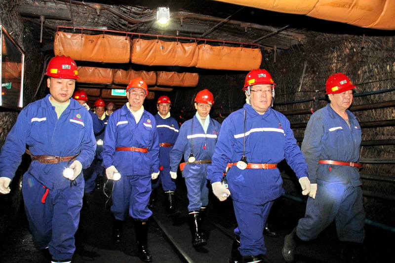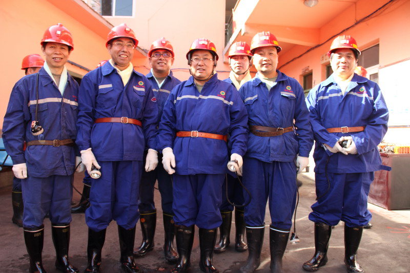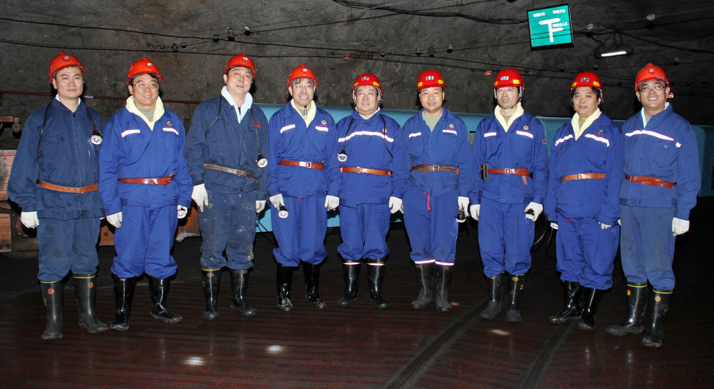 與8對生產(chǎn)礦井礦長在井下合影留念,希望大家凝心聚力搞好安全生產(chǎn)。