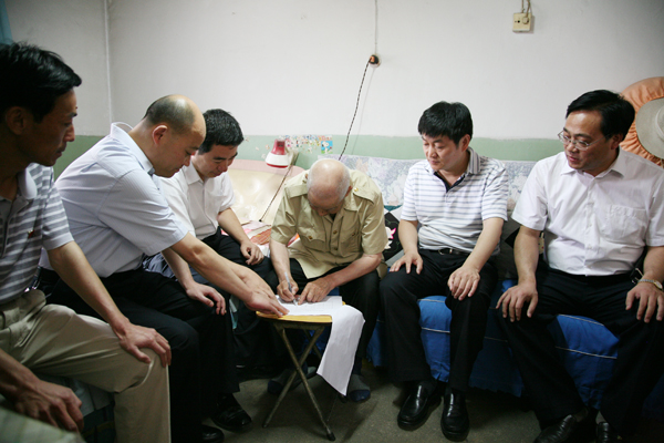 老人鄭重簽字,感謝黨的關(guān)懷