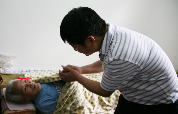 看望在病床上的鄧加云老人