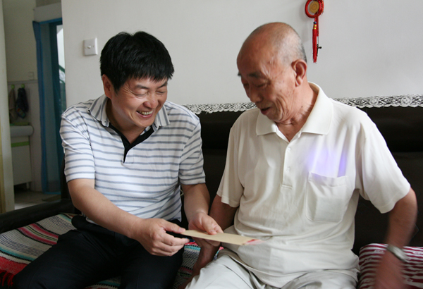 走進煤技校老人梁長壽家中,老人握著封建利的手,開心的不得了。封局長對同行的人說:“這是我的老師,從老師身上學(xué)習(xí)到很多的知識,受益匪淺?!?/p>