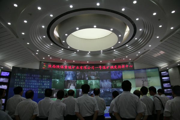6月14日早晨,銅川礦業(yè)公司參觀學(xué)習(xí)一行一下車,就受到黃陵礦業(yè)公司領(lǐng)導(dǎo)的熱烈歡迎。先觀看了黃陵礦業(yè)公司形象宣傳片,在黃陵礦業(yè)公司政研會會長、原黨委書記閆勃陪同下參觀了文化中心,感受到黃陵企業(yè)文化發(fā)展的歷程。接著,參觀學(xué)習(xí)人員分成兩組,一組由公司黨委書記黃河帶隊參觀黃陵企業(yè)文化地面建設(shè)情況;一組由公司副總、安監(jiān)部長延永華,公司副總、生產(chǎn)部長賈林安帶領(lǐng)生產(chǎn)礦井黨委書記、礦長前往一號煤礦井下參觀。