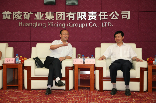黃陵礦業(yè)公司總經(jīng)理范京道與銅川礦業(yè)公司黨委書記黃河親切交談