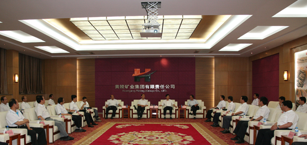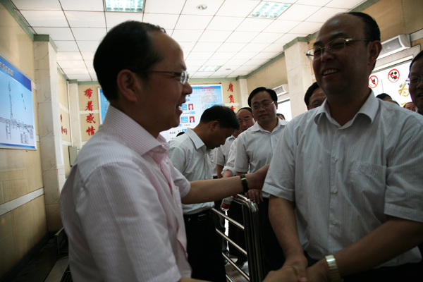 黃陵礦業(yè)公司董事長、黨委書記宋老虎歡迎銅川礦業(yè)公司黨委書記黃河一行