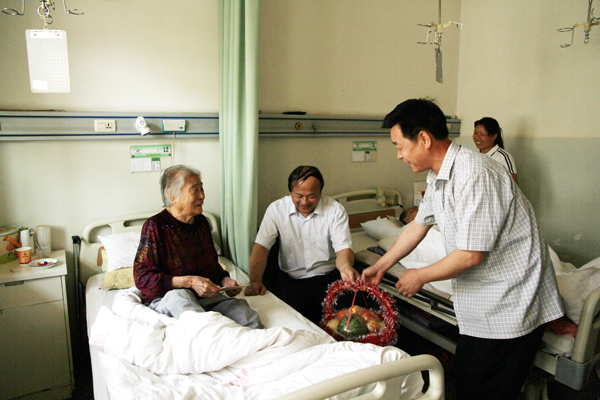 帶著礦業(yè)公司黨政的深切關(guān)懷,帶著全局各級黨組織的深情厚誼,6月7日,副局長苑京敏攜保衛(wèi)處處長齊群來到銅川礦務(wù)局中心醫(yī)院看望運(yùn)銷公司老黨員溫桂珍,送去組織的關(guān)愛。