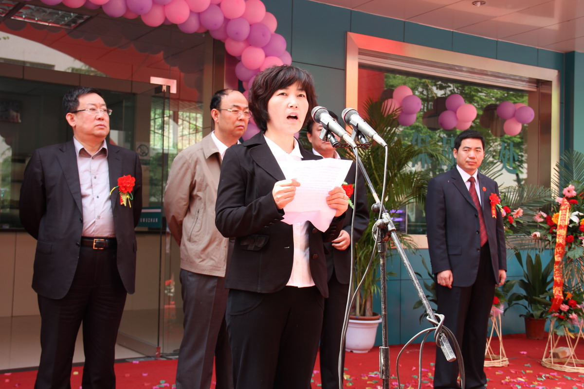 銅川市衛(wèi)生局副局長郭慧寧在梅苑小區(qū)衛(wèi)生服務(wù)站投用剪彩儀式上講話