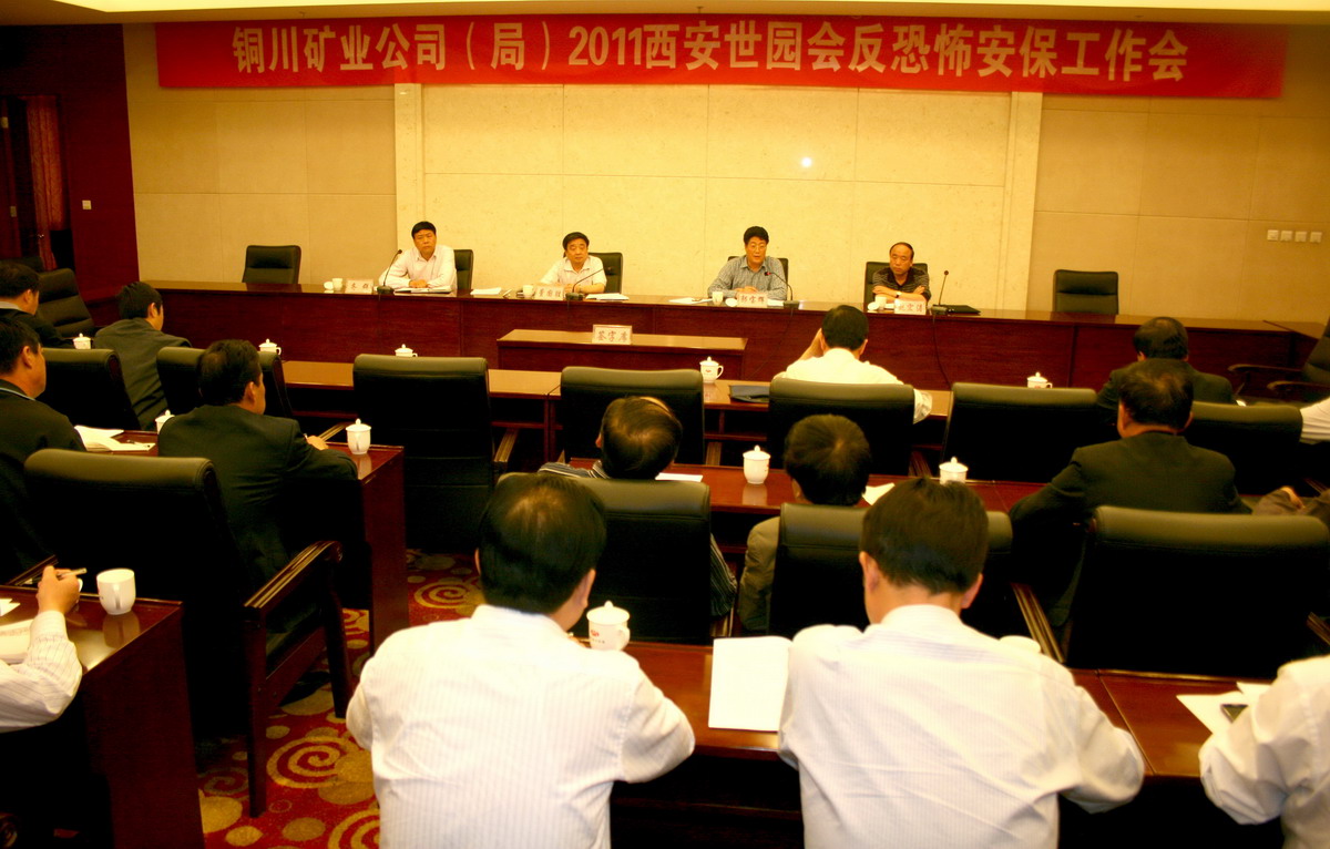 在全公司范圍內(nèi)進(jìn)行為期一周的安保工作檢查之后,4月27日下午,公司又在煤業(yè)賓館餐廳三樓會(huì)議室專門召開了“銅川礦業(yè)公司(局)2011西安世園會(huì)安保反恐防恐工作會(huì)”。公司副總經(jīng)理郭寶輝、銅川市公安局虹橋分局局長(zhǎng)趙宏濤,公司保衛(wèi)部、信訪辦公室等部門負(fù)責(zé)人及公司(局)所屬各單位的分管領(lǐng)導(dǎo)、保衛(wèi)科長(zhǎng)等參加了會(huì)議。