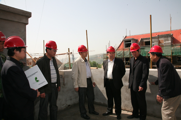 總經(jīng)理宋志剛一行到達荔枝園小區(qū)工地后,馬上進入工地現(xiàn)場,對施工進度進行了詳細詢問,察看太陽能壁掛式安裝,對外墻豎面顏色、窗戶安裝都認真察看。原來設(shè)計的窗戶是推拉式、屋頂是平頂,為了節(jié)能環(huán)保,美化環(huán)境,公司要求設(shè)計院根據(jù)實地情況進行了修改,將推拉式窗戶改成平開,降低了噪音,減少了污染,保持了室內(nèi)溫度。將平頂改成歐式坡屋頂,不僅美觀漂亮,而且利于樓的防水系統(tǒng),防滲水,和周邊的環(huán)境相協(xié)調(diào),紅色頂、三色墻、階梯式建筑、在群山綠樹懷抱中相輝映,徹底打破了過去火柴盒式建筑,給大家一個全新的、環(huán)保溫馨的家園。