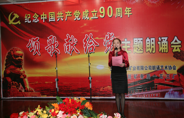 銅川礦業(yè)公司朗誦藝術(shù)協(xié)會成立于2009年的春天,志趣相投的員工相聚在一起,共同走進(jìn)詩情畫意之中,享受詩歌帶來的歡樂;一起走進(jìn)朗誦藝術(shù)的殿堂,享受朗誦藝術(shù)帶來的心靈震撼!在建黨90周年即將到來之際,用詩歌朗誦表達(dá)對偉大祖國的熱愛,用心靈之歌贊美偉大的中國共產(chǎn)黨。