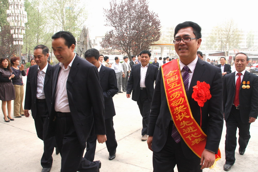 3時40分,李文輝驅(qū)車駛進(jìn)礦區(qū)大門,一時間,鑼鼓喧天夾道歡迎,鞭炮齊鳴熱烈祝賀。轎車停在機(jī)關(guān)院內(nèi),李文輝同志抱著全國“五一”勞動獎狀下車后,頓時間,機(jī)關(guān)院內(nèi)響起雷鳴般的掌聲,黨委書記李國璧手捧鮮花健步走上前去,代表全礦萬名職工家屬獻(xiàn)給載譽(yù)歸來的李文輝同志,然后接過他手中的全國“五一”勞動獎狀獎牌舉過頭頂向大家展示,整個機(jī)關(guān)院那一瞬間沸騰了,掌聲、歡呼聲在院內(nèi)上空響徹,熱鬧之極。李文輝滿面笑容的與列隊(duì)迎接的全體同志一一握手致意,共同慶祝下石節(jié)煤礦取得的這一至高榮譽(yù)。