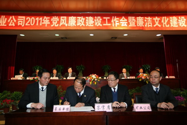 接著,副總經(jīng)理薛鳴同志宣讀了公司黨政《關(guān)于表彰廉潔文化建設(shè)先進(jìn)單位和先進(jìn)個人的決定》。公司黨政領(lǐng)導(dǎo)為先進(jìn)集體頒發(fā)了獎牌。與各單位黨政簽訂黨風(fēng)廉政建設(shè)目標(biāo)責(zé)任書。王石凹礦、玉華礦、物質(zhì)供應(yīng)分公司在大會上作了發(fā)言,交流了經(jīng)驗。