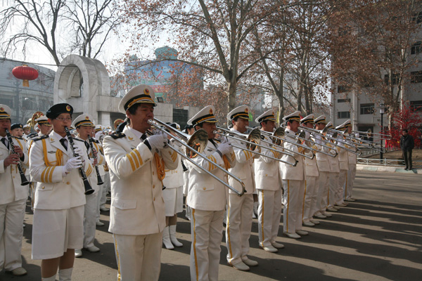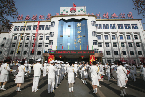 礦區(qū)工會副主席梁桂香宣布表演開始。在震耳的鞭炮聲中,局“三會”描繪的“十二五”宏偉藍(lán)圖仿佛浮現(xiàn)在我們的眼前。伴隨著嘹亮的軍樂,我們的工人軍樂隊威武走來。供應(yīng)處黨政組織在搞好礦井物質(zhì)供應(yīng)工作的同時,注重職工群眾文化團(tuán)體建設(shè),在局黨政的大力支持和扶植下,成立了一支高質(zhì)量、高標(biāo)準(zhǔn)的百人軍樂隊,把軍樂隊作為一種創(chuàng)新,一種文化重點(diǎn)來培養(yǎng),讓職工在學(xué)會“洋器”、掌握本領(lǐng)、展現(xiàn)自我中快樂工作,奉獻(xiàn)企業(yè)。同時提高了人員素質(zhì),享受了美好的生活,充分彰顯了我局企業(yè)文化建設(shè)的成果,為我局贏得了榮譽(yù)。