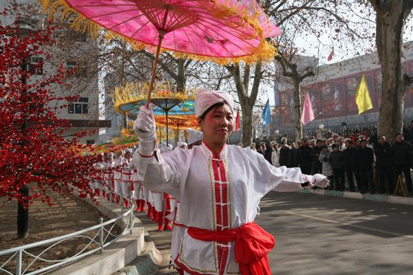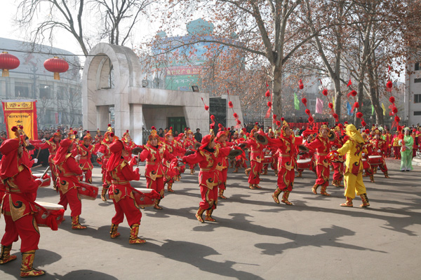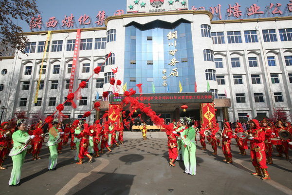 瑞虎騰空去,玉兔踏青來。為了進(jìn)一步活躍礦區(qū)職工群眾文化生活,2月17日上午,銅川礦區(qū)工會選出最具我局特色的工人軍樂隊、行鼓隊、鑼鼓、社火隊等精彩節(jié)目,舉辦了“和諧礦區(qū)、玉兔迎春”社火表演。副局長薛鳴、郭寶輝、封建利,張志文以及局機(jī)關(guān)處室的工作人員都前來觀看了表演。