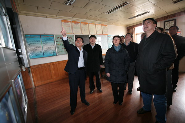 副總經(jīng)理薛鳴、封建利陪同省證監(jiān)局副局長(zhǎng)趙瑩一行到王石凹礦調(diào)度室檢查
