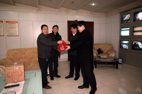 郭局長(zhǎng)、封局長(zhǎng)來(lái)到公司總調(diào)度室,看望工作人員。郭局長(zhǎng)說(shuō):“我和封局長(zhǎng)受局黨政委托,向你們表示感謝!在這春節(jié)即將到來(lái)的最后幾天,一定要保持高度的責(zé)任心,認(rèn)真完成每一項(xiàng)工作,讓我們大家共同度過(guò)一個(gè)祥和平安的新年?!?