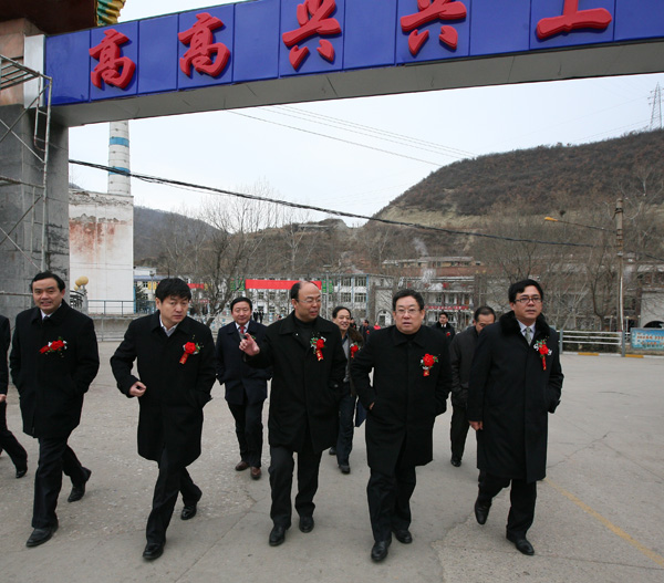 局長(zhǎng)宋志剛、局黨委副書記、常務(wù)副局長(zhǎng)黃河為礦區(qū)開閘送氣