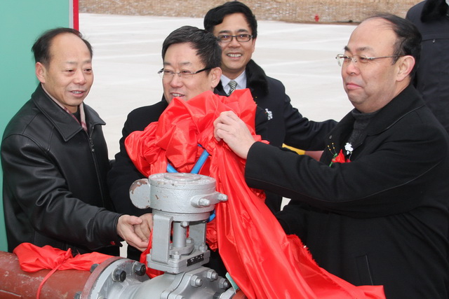 局長(zhǎng)宋志剛、黨委副書記、常務(wù)副局長(zhǎng)黃河、副局長(zhǎng)郭寶輝、副局長(zhǎng)封建利前來參加天然氣通氣儀式