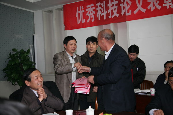 首先,公司副總工程師劉長(zhǎng)來宣讀科技論文比賽結(jié)果。公司地測(cè)處李全德撰寫的《關(guān)于“軟巖”》、下石節(jié)礦白永筱等撰寫的《高瓦斯礦井厚煤層綜放工作面長(zhǎng)鉆孔大孔徑瓦斯預(yù)抽技術(shù)的研究和實(shí)踐》榮獲一等獎(jiǎng);下石節(jié)礦任軍產(chǎn)撰寫的《軟巖支護(hù)技術(shù)在下石節(jié)礦的應(yīng)用》等5篇論文獲得二等獎(jiǎng);王石凹礦郝建華撰寫的《高壓變頻器在王石凹煤礦壓風(fēng)機(jī)節(jié)能控制中的應(yīng)用》等6篇論文獲得優(yōu)秀獎(jiǎng)。這十三篇優(yōu)秀論文是從收集到的55篇論文中,本著“客觀、公正、寧缺毋濫、優(yōu)中選優(yōu)”黨的原則,經(jīng)論文評(píng)審小組討論后評(píng)選出的。公司黨政領(lǐng)導(dǎo)高度重視此項(xiàng)工作,局長(zhǎng)宋志剛專門批示,召開專門會(huì)議,對(duì)優(yōu)秀論文作者進(jìn)行表彰,要把這項(xiàng)工作作為長(zhǎng)效機(jī)制進(jìn)行下去。各單位要組織好科技人員的業(yè)務(wù)學(xué)習(xí)、工作總結(jié)和論文撰寫工作,以提高工程技術(shù)人員的科技能力和自主創(chuàng)新水平,營(yíng)造濃厚的學(xué)術(shù)氛圍,使工程技術(shù)干部撰寫出更多高質(zhì)量的科技論文,為建設(shè)安全穩(wěn)定、充滿活力的和諧富裕礦區(qū)做出貢獻(xiàn)。接著,副局長(zhǎng)、總工程師劉啟科、副總工程師戴耀輝、孔令義、劉長(zhǎng)來分別為獲獎(jiǎng)作者頒發(fā)了證書,希望他們?cè)俳釉賲?,做出更大的貢獻(xiàn)。