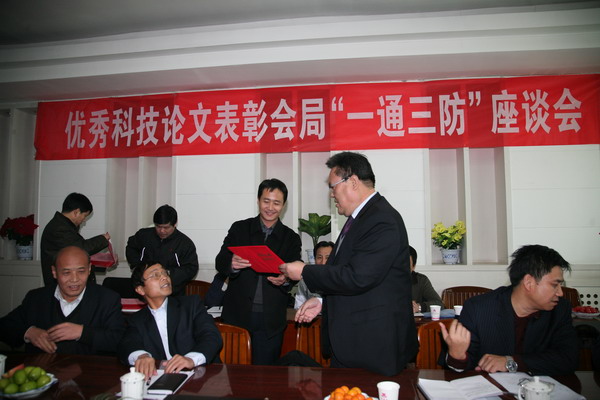 副總工程師戴耀輝給獲獎(jiǎng)?wù)撐淖髡哳C獎(jiǎng)