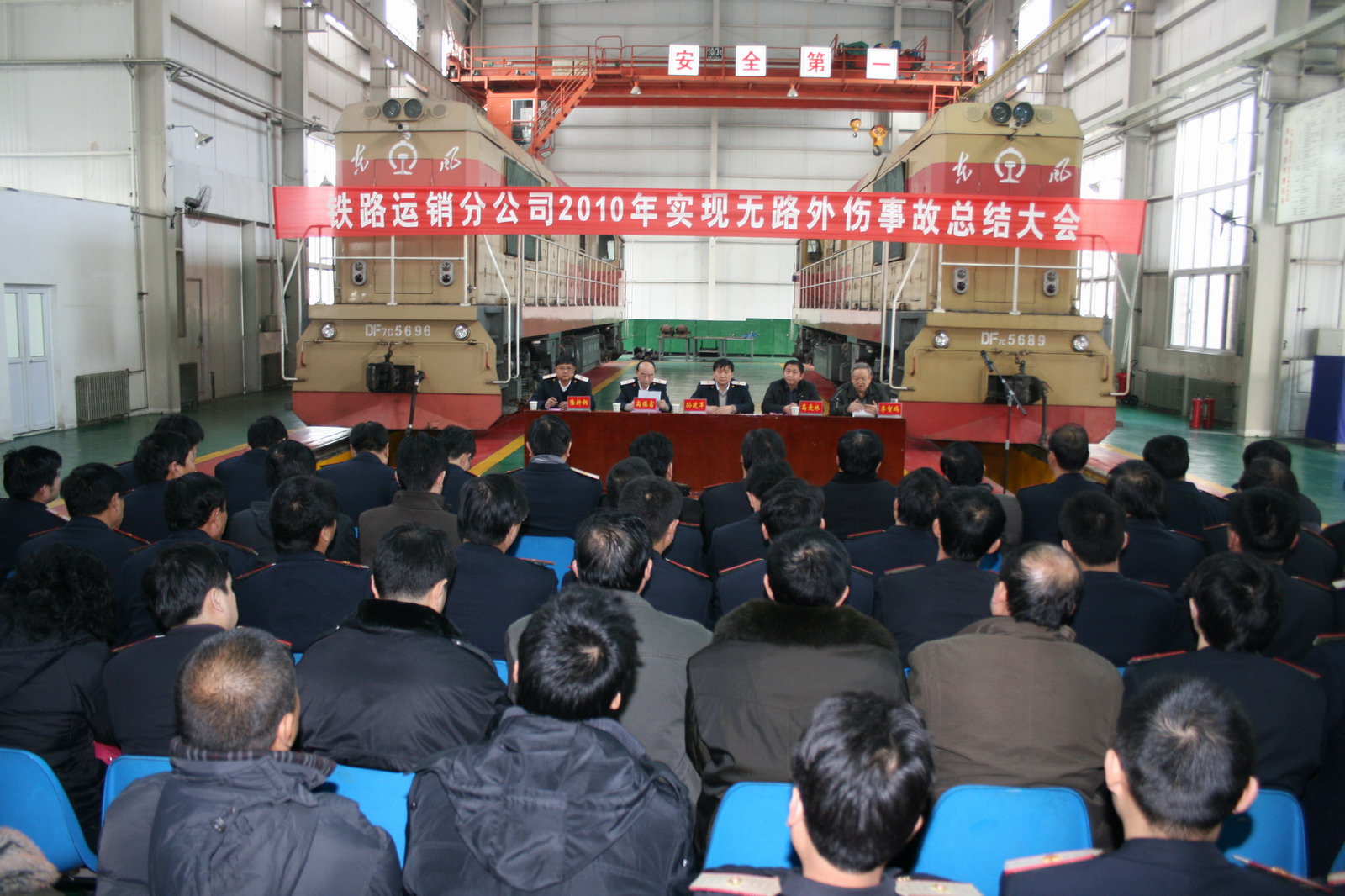 圖為鐵路運(yùn)銷分公司2010年實(shí)現(xiàn)無(wú)路外傷事故總結(jié)大會(huì)剪影: