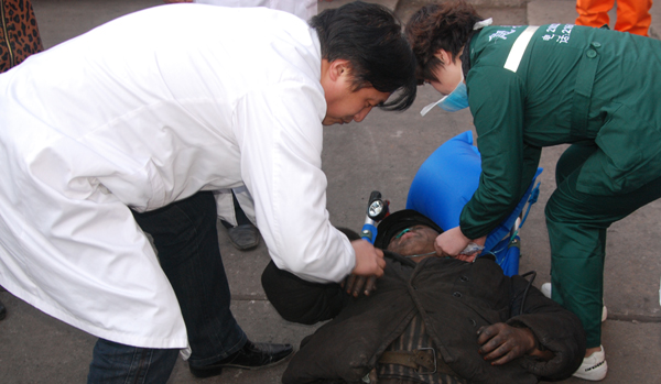 中心醫(yī)院醫(yī)護人員在檢查傷員