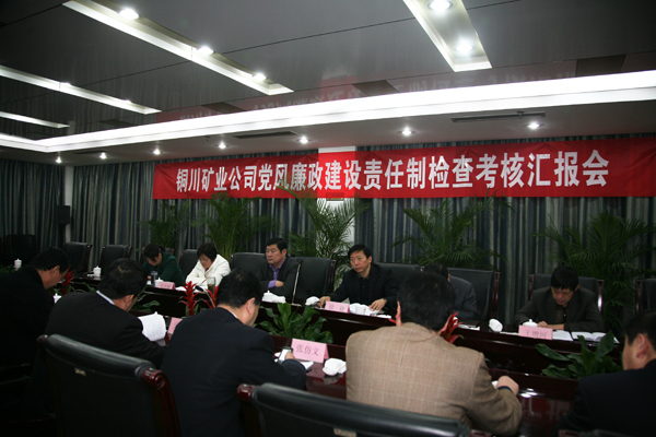 早上8時,公司在煤業(yè)賓館召開了黨風(fēng)廉政建設(shè)責(zé)任制落實情況匯報會,公司黨委書記杜樹山、局長宋志剛、副書記、紀委書記張志文、礦區(qū)工會主席張仿文、副局長劉水利和公司黨風(fēng)廉政建設(shè)責(zé)任制領(lǐng)導(dǎo)小組成員參加了匯報會。會上,黨委書記杜樹山代表公司黨政領(lǐng)導(dǎo)班子就2010年落實黨風(fēng)廉政建設(shè)責(zé)任制情況作了匯報。他從堅持把黨風(fēng)廉政建設(shè)擺在重要位置,精心部署,狠抓落實;推進制度落實,提高了反腐倡廉制度的執(zhí)行力;豐富教育形式,提升完善廉潔文化創(chuàng)建工作;重視信訪舉報,繼續(xù)加大查處違法違紀案件力度;圍繞中心工作,切實強化監(jiān)督檢查工作;踐行“三大治企理念”,企業(yè)得到持續(xù)全面和諧發(fā)展等六個方面進行了詳細匯報。同時,就2011年公司黨政落實黨風(fēng)廉政建設(shè)責(zé)任制提出了具體措施:一是全面落實黨風(fēng)廉政建設(shè)責(zé)任制;二是充分發(fā)揮黨風(fēng)廉政“大宣教”格局;三是持續(xù)提高反腐倡廉制度的執(zhí)行力;四是堅決從嚴查辦違紀違法案件;五是完善適合銅煤特點的懲防體系建設(shè);六是深入開展效能監(jiān)察工作。