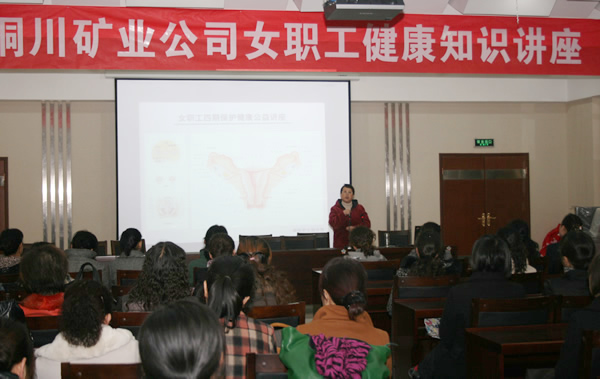 為了更好的貫徹執(zhí)行省總工會女職工委員會2010(03)號文件,加強(qiáng)女職工的勞動保護(hù)和特殊利益,普及女職工健康知識,提高女職工自我防范意識,改善生活質(zhì)量,銅川礦業(yè)公司機(jī)關(guān)工委工會免費(fèi)開展了“女職工預(yù)防婦科病知識及預(yù)防兩癌知識講座”活動,于11月18日下午舉辦了女職工健康知識講座。