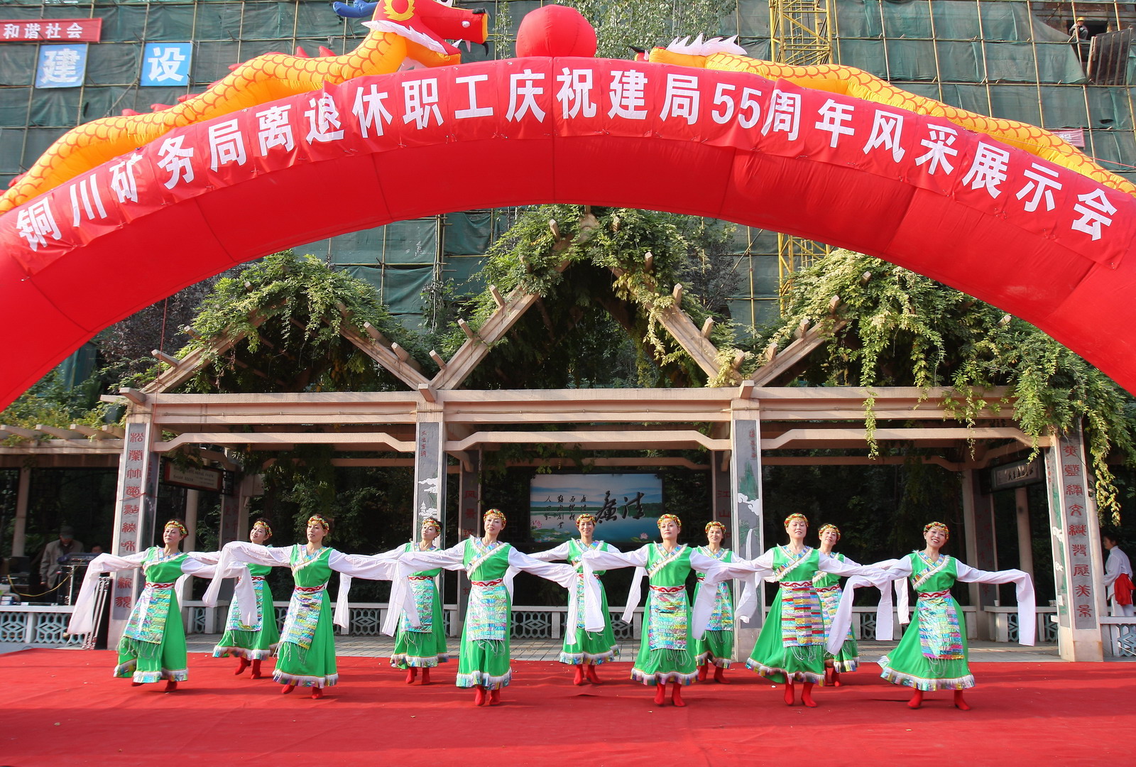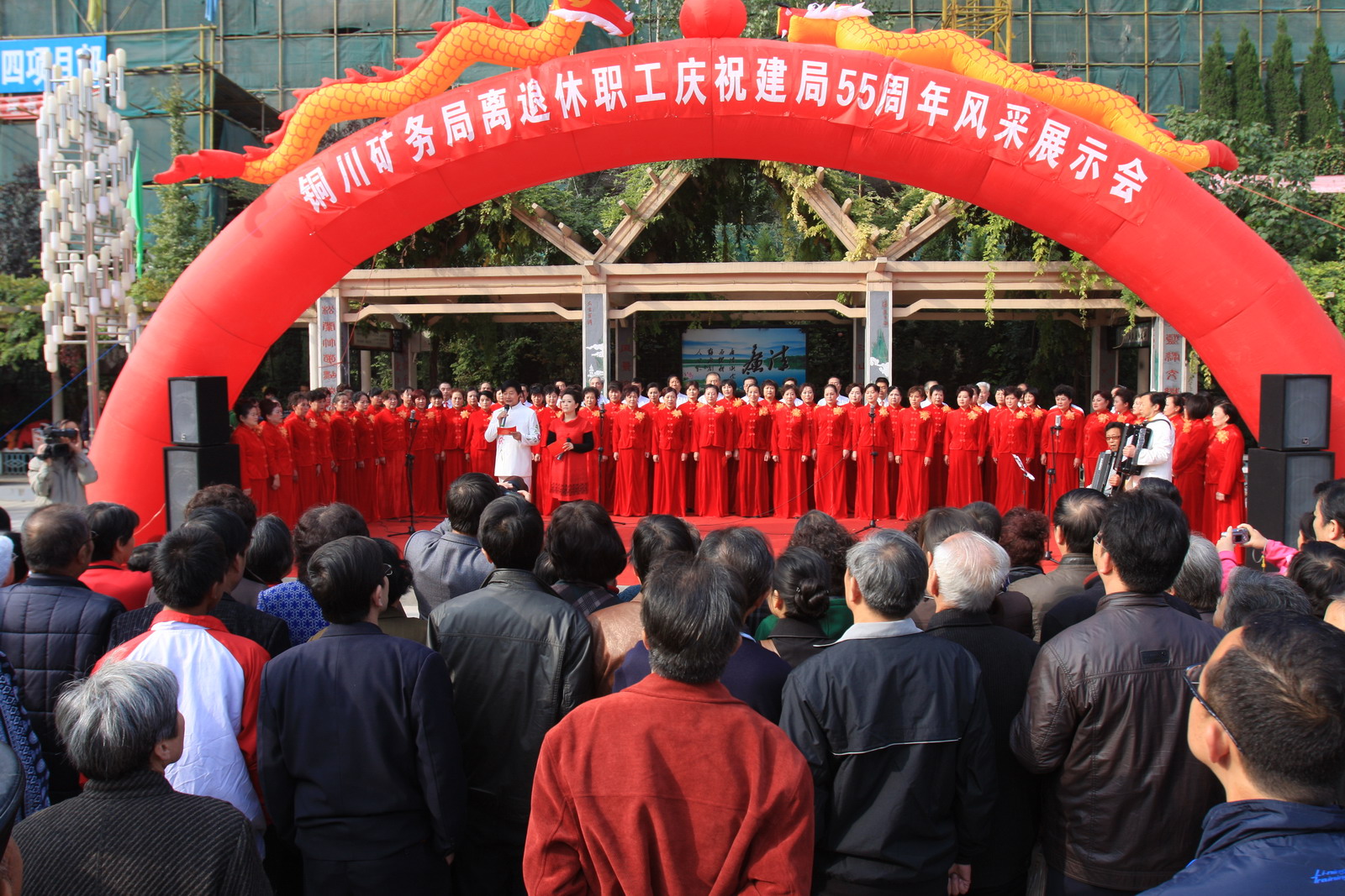 10月27日下午,由局老齡委主辦的銅川礦務(wù)局離退休職工慶祝建局55周年風(fēng)采展示系列活動(dòng)在供應(yīng)處新和廣場(chǎng)拉開序幕。局黨委副書記、紀(jì)委書記張志文、副局長郭寶輝,局離退休處、干部處、供應(yīng)處、干休所、桃園社區(qū)、礦工報(bào)社等單位領(lǐng)導(dǎo)和離退休職工家屬上千人觀看了演出。
