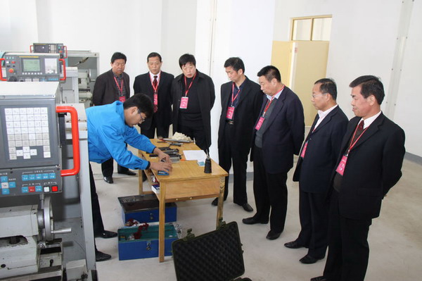 高新華一行首先來到維修電工競賽實(shí)操考場,當(dāng)看到考試現(xiàn)場組織嚴(yán)密、監(jiān)考、巡考人員認(rèn)真負(fù)責(zé)的履行職責(zé)時(shí),高新華對學(xué)院的考務(wù)組織工作表示滿意;在數(shù)控車工競賽實(shí)操考場,高新華被數(shù)控車工實(shí)習(xí)設(shè)備的先進(jìn)和實(shí)習(xí)規(guī)模深深吸引,當(dāng)?shù)弥O(shè)在實(shí)習(xí)教學(xué)大樓的數(shù)控車工競賽考場是剛剛投入使用,對學(xué)院為了技能大賽的如期舉行而努力提高施工進(jìn)度、搶抓設(shè)備安裝時(shí)間、精細(xì)調(diào)整競賽使用設(shè)備做出的貢獻(xiàn)表示極大地贊賞;在寬敞明朗的數(shù)控車工實(shí)操現(xiàn)場,高新華在一位參賽選手面前駐足,認(rèn)真觀看這位選手在審圖后細(xì)心的準(zhǔn)備數(shù)控切削刀具;他說,國有企業(yè)需要大量的技術(shù)能手,只有職工的技術(shù)素質(zhì)大面積的提高,國有企業(yè)才能的占領(lǐng)裝備制造市場。高新華還到技能大賽保密組查看了數(shù)控車工選手制作的工件,拿起一個(gè)做了編號的工件認(rèn)真觀察后說,一定要做好競賽試題和工件編號的保密工作,選出國有企業(yè)真正的技術(shù)精英。