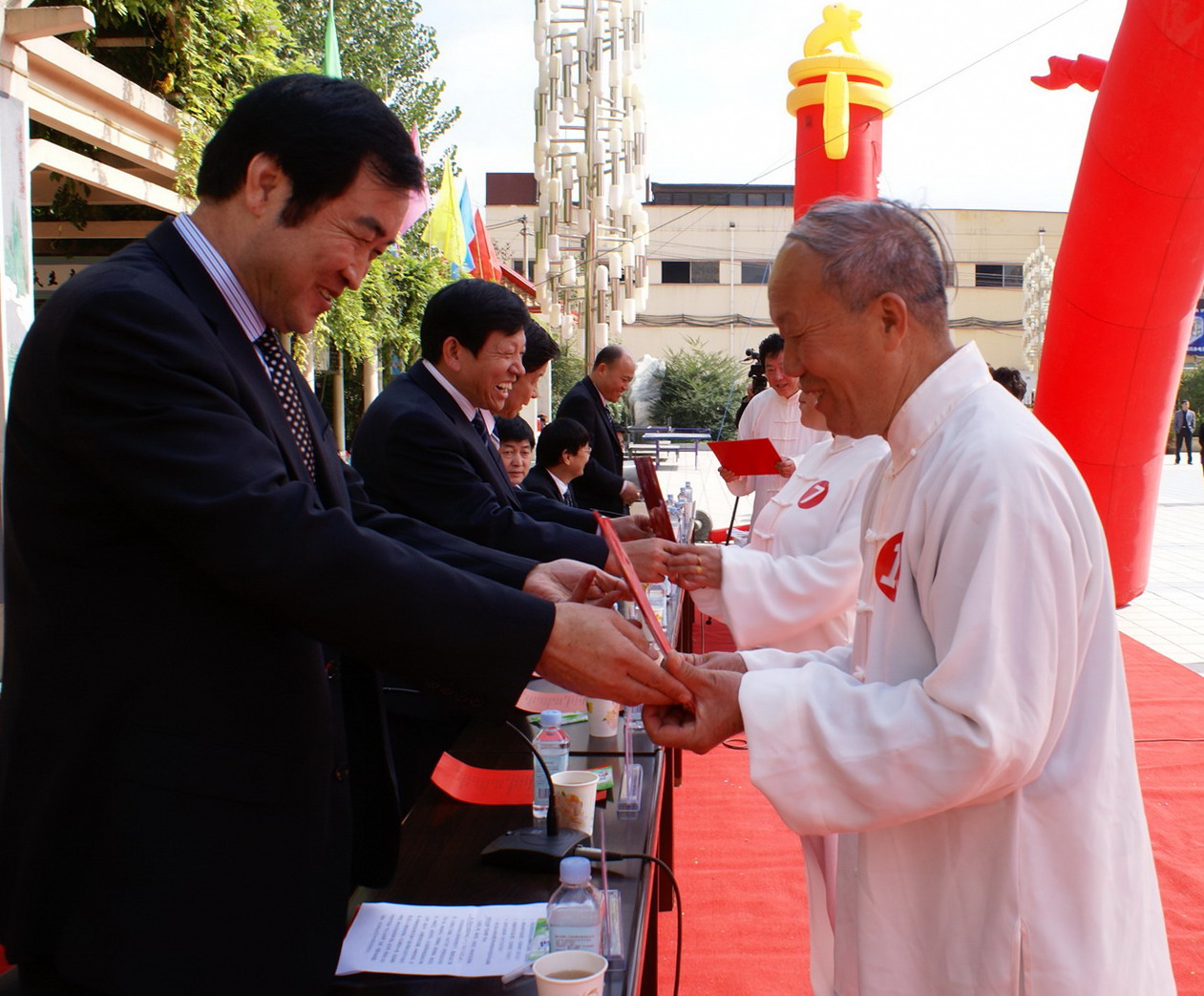 比賽活動儀式上,供應(yīng)處處長郜鵬發(fā)表了熱情洋溢的講話,運動員代表張文遠、裁判員代表李來印分別代表運動員和裁判員進行宣誓。約9時許,處黨委書記索富安宣布“供應(yīng)處2010年重陽節(jié)首屆百人太極拳健身比賽正式開始”。比賽活動儀式由副處長蒙志超主持。