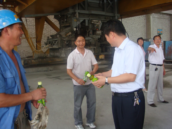 面對連日來的持續(xù)高溫,7月30日,銅川礦業(yè)有限公司副局長封建利在奧博集團黨政領(lǐng)導(dǎo)的陪同下,帶著夏季防暑降溫慰問品,深入華峰公司和銅霖公司對揮汗奮戰(zhàn)在生產(chǎn)一線的員工進行慰問。