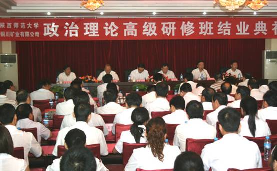 7月20日,陜西師范大學銅川礦業(yè)有限公司政治理論高級研修班結業(yè)典禮在紅玫瑰四樓會議室隆重舉行。公司領導杜樹山、宋志剛、李志科、張志文、張仿文、陜西師范大學教師干部教育學院院長袁奮光、副院長楊斌出席,公司各基層單位黨政主要領導、組織部長和公司機關各處室、部門負責同志及研修班全體學員等120余人參加了結業(yè)典禮。