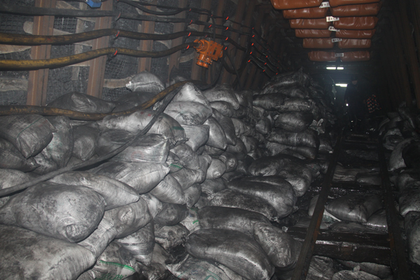 多經(jīng)公司、機(jī)電車間機(jī)修廠抽調(diào)所有電焊工突擊焊制水管接口,張小峰、毛世寬等黨員干部帶領(lǐng)員工晝夜奮戰(zhàn),有的工人電弧刺傷眼睛也不下崗位。運(yùn)輸區(qū)井口工作人員在單位領(lǐng)導(dǎo)的帶領(lǐng)下,在確保安全的前提下,還現(xiàn)場(chǎng)發(fā)明了管子捆綁入罐籠,下井底后用機(jī)車牽引下罐的好辦法,將下管子速度由傳統(tǒng)的每罐3根提高到6根,每班15罐提高到25罐,為井下及早完成鋪設(shè)管道任務(wù)爭(zhēng)取了時(shí)間。井下在中央下山上平臺(tái)巷道深水區(qū)組織人員突擊排水,確保電機(jī)列車運(yùn)輸暢行無虞。由于整條大巷排水溝長(zhǎng)時(shí)間大量排水,沉淀的煤泥很快將排水溝堵實(shí),大水便順著水溝涌進(jìn)了大巷,在這緊急時(shí)刻,他們又組織人員晝夜奮戰(zhàn),將近6000塊水溝蓋板全部揭開,并用編制沙袋和密封板將排水溝加高,保證大巷排水暢通。掘一隊(duì)打臨時(shí)配巷期間,黨員干部響亮地喊出了“沖向前,當(dāng)骨干,打勝仗”的誓言,在斷層擋道的不利條件下,僅用10天時(shí)間就保質(zhì)保量地突擊打成了斷面6.4平方米,長(zhǎng)180米的綜采面機(jī)尾儲(chǔ)水配巷,為排水清淤贏得了先機(jī)。掘一隊(duì)還與掘二隊(duì)并肩作戰(zhàn),建水倉(cāng)、運(yùn)管子、清煤泥,當(dāng)長(zhǎng)6米、重200公斤的6寸排水管由井底運(yùn)到中央下山上平臺(tái)處時(shí),他們就完全用雙肩把一根根管子沿著路長(zhǎng)坡陡的絞車道扛到安裝鋪設(shè)地點(diǎn)。在清煤泥時(shí),黨員趙平利、梁社群等黨員沖鋒在前,自覺與工人結(jié)伴裝袋,揮汗苦干,以無聲的行動(dòng)感奮著廣大工友苦干大干。黨員干部根據(jù)現(xiàn)場(chǎng)實(shí)際組織工友們將煤泥袋向裝車點(diǎn)傳遞,形成了黨群協(xié)力大干的拼搏風(fēng)景線。無論是掘進(jìn)隊(duì)、綜采隊(duì)的清淤裝泥,還是機(jī)電車間安裝水管或水泵,黨員干部們均在需要時(shí)帶頭脫去衣靴,趟入冰冷刺骨的積水中咬牙苦戰(zhàn)的動(dòng)人情景屢見不鮮,在他們的感召下,廣大工人紛紛仿效,使排水清淤工效成倍提高。機(jī)電車間負(fù)責(zé)安裝鋪設(shè)排水管道,在陡坡的絞車道,在狹窄的皮帶巷,打吊眼、架管子,還要講求工程質(zhì)量標(biāo)準(zhǔn),真是一根管道一身汗,黨員表率顯精神。面對(duì)突擊排水時(shí)水泵出現(xiàn)的實(shí)際問題,機(jī)電車間的黨員干部與公司的工程技術(shù)人員還一起進(jìn)行科技創(chuàng)新,及時(shí)將效率較低的多級(jí)離心泵換為大功率潛水泵,還以改用大斷面電纜解決了電纜發(fā)熱易短路的問題,確保了排水安全流暢。
