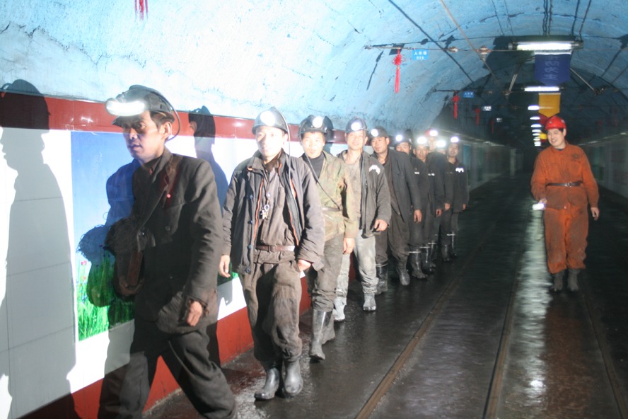 職工班后在井下侯罐室等待升井