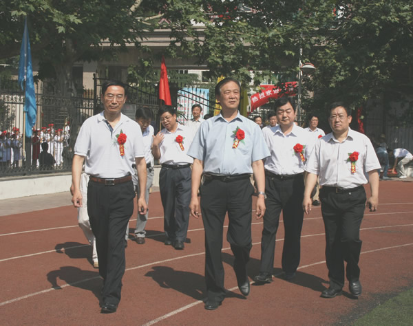 高仰才(中)、王雙明、高勤社、閔龍等在局黨政領(lǐng)導(dǎo)的陪同下實地參觀