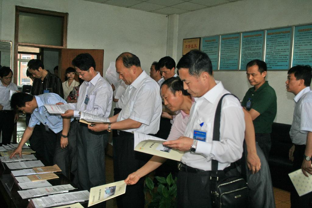 與會人員查看下石節(jié)礦班組建設(shè)有關(guān)資料