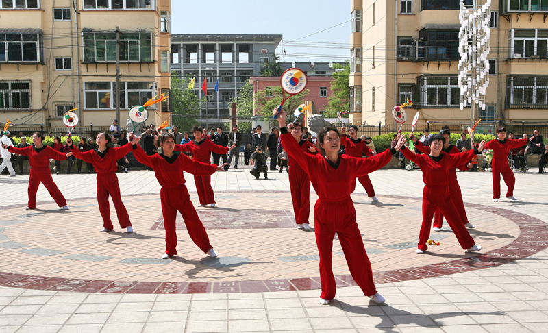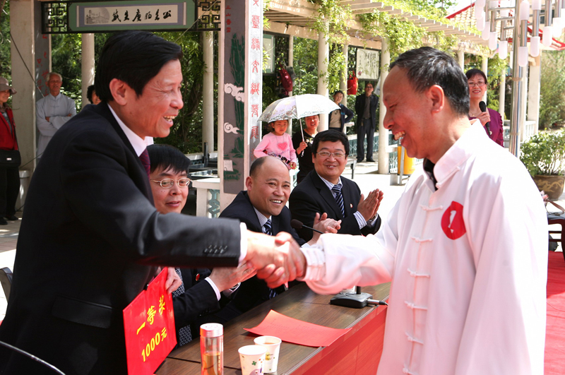 首先,百名離退休人員身著白色的太極服裝,神態(tài)自然的進(jìn)行24式太極拳表演。隨后,6個(gè)代表隊(duì)分別進(jìn)行了小組賽。27人經(jīng)過(guò)預(yù)賽后,入圍的12人參加了本次決賽,王銳、任秀云、張正文、張奎文等7人分別榮獲一、二、三等獎(jiǎng)。為了助興,處家屬代表隊(duì)在比賽間隙向大家展示了木蘭扇和柔力球表演。比賽隊(duì)伍中有離休老干部和退休處領(lǐng)導(dǎo),年齡最大的有80余歲。